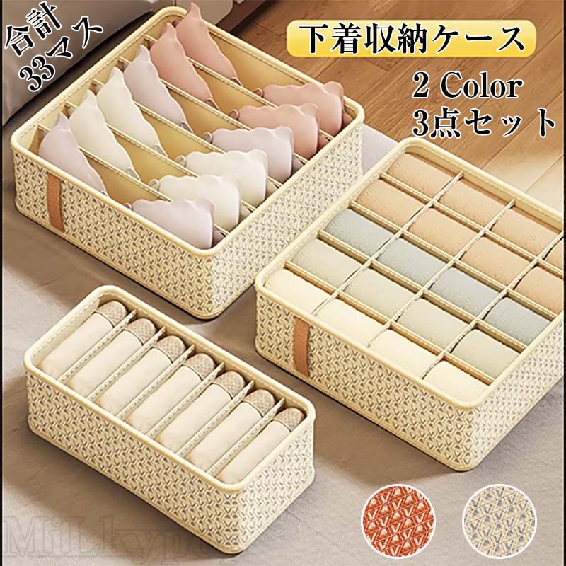下着収納ボックス 布 下着収納 下着収納ケース 3点セット アンダーウェア収納 下着 引き出し 仕切り インナー収納 仕切りボックス タンス整理 靴下 ランジェリー チェスト 収納用品
