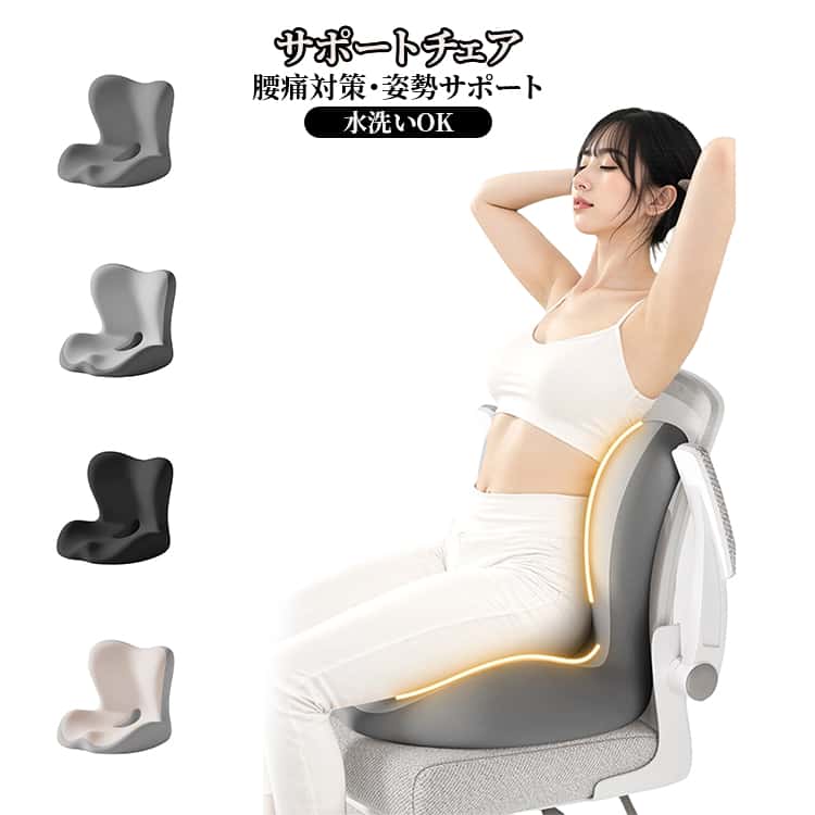 サポートチェア 背もたれ付き 人間工学 座椅子 クッション 洗える 滑り止め メモリーフォーム 姿勢矯正 姿勢が良くなる 美姿勢 父の日 母の日