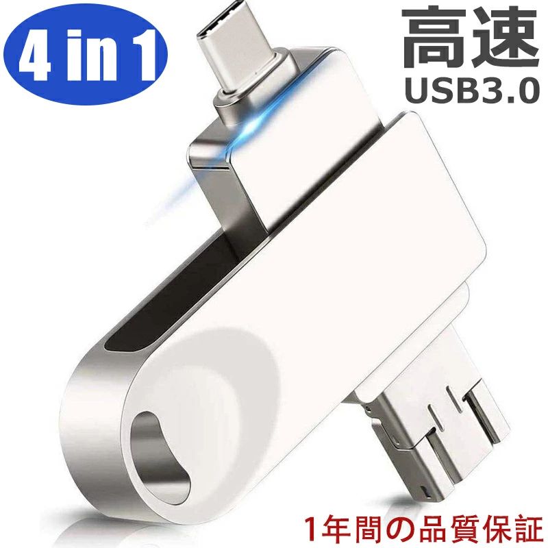 メモリ USBメモリ USB2.0メモリー MicroUSB usb USBメモリー おしゃれ フラッシュメモリ 2in1 USBメモリ回転式 iPhone iPad PC Type-C