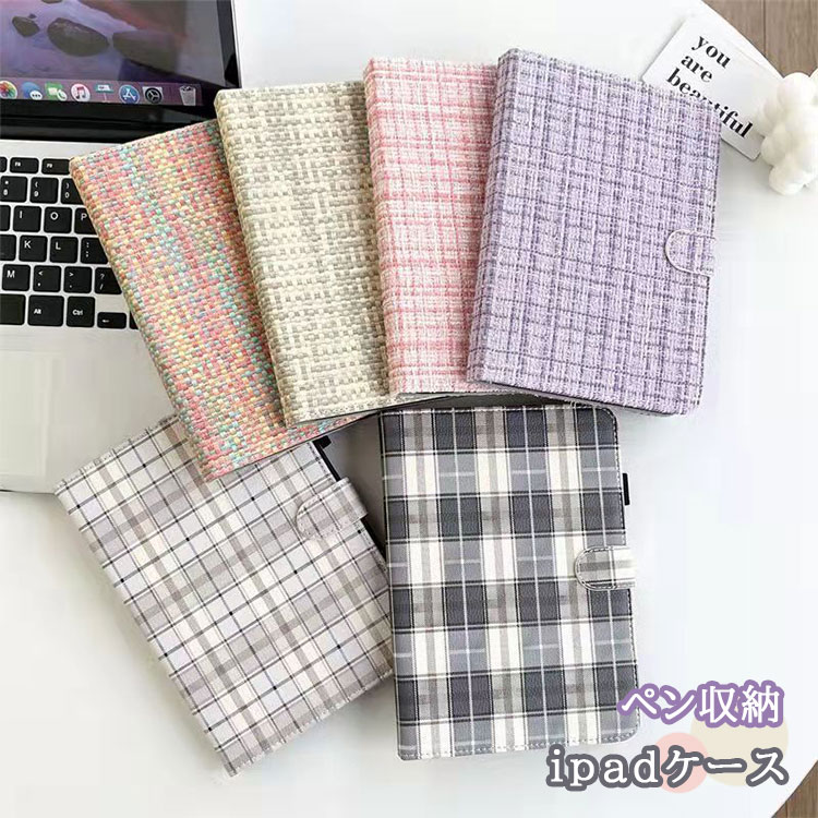 ipad ケース 第10世代 手帳 ペン収納 おしゃれ チェック柄 第7世代 保護ケース pro air カバー PUレザー オートスリープ スタンド機能 軽量 耐衝撃 mini 対応 薄型