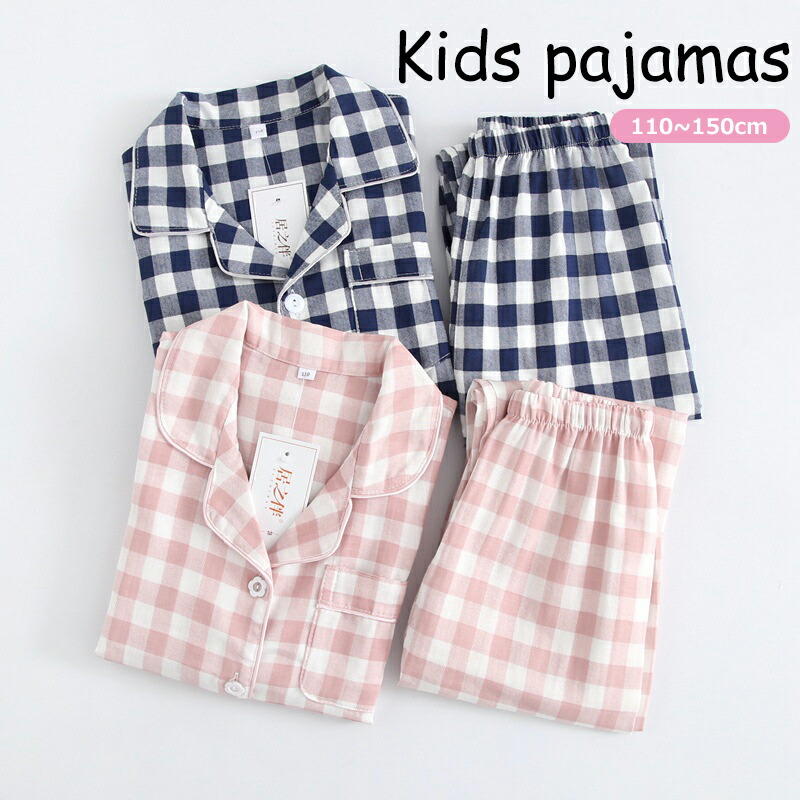 パジャマ 子供 キッズ 長袖 こども 子ども 140 150 かわいい ダブルガーゼ 女の子 男の子 綿 ロングパンツ ルームウェア 上下セット 前開き ホームウェア 2点セット 上下 ナチュ 子供服