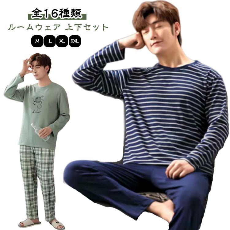 パジャマ メンズ 秋用 長袖 薄手 上下セット 大きさインズ 3 部屋着 寝巻き ルームウェア 男性用 家着 おしゃれ 柔らかい ゆったり