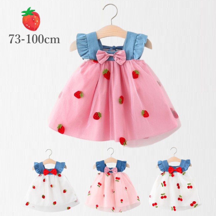 ベビー服 女の子 ワンピース 夏服 8 キッズ ベビー マタニティ 早い者勝ち 苺(白) 苺(ピンク) サクランボ(白) サクランボ(ピンク) 73cm 80cm 90cm 100cm
