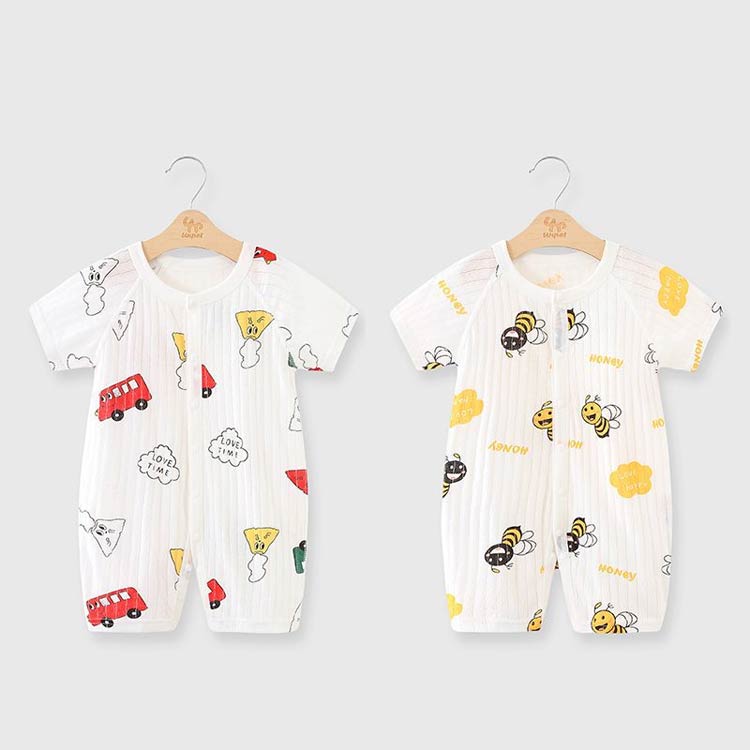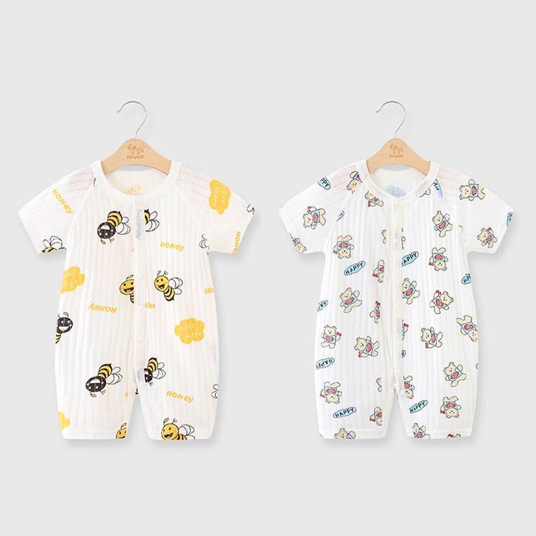 夏 ロンパース ベビー 半袖 赤ちゃん 綿 2点セット 前開き 部屋着 男の子 女の子 肌着ショート コットン 70 快適 ルームウェア ベビー服 59 60 吸湿 80 薄手 総柄 無地 90cm