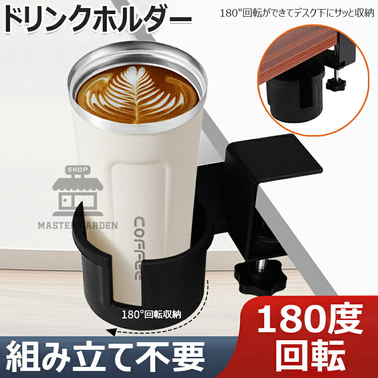 ドリンクホルダー 卓上カップホルダー テーブルカップホルダー ボトルホルダー デスクサイド用ウォーターボトルホルダー 卓上カップホルダークランプ クランプ式 180度 こぼれ防止コーヒーカップホルダー