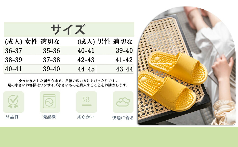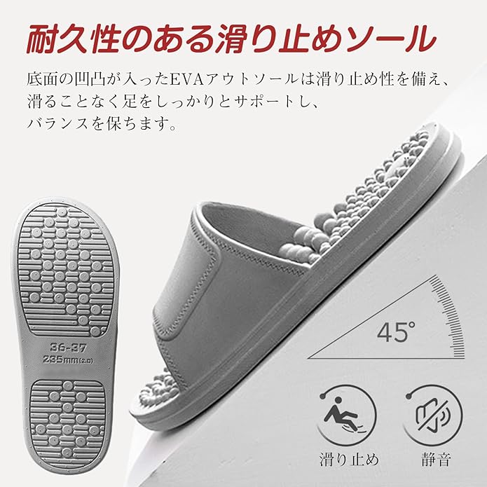 【健康効果】スリッパの突起がぐりぐりとツボを刺激します。刺激のバランスが絶妙でソフトな履き心地のサンダルです。オフィスワークや家事をしながら快適に足つぼを刺激できます。
